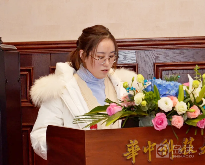 丁雨葵主任介紹了分析測(cè)試中心與島津的合作情況,感謝島津?qū)ξ抑行牡拇罅χС?,并?duì)獲獎(jiǎng)的學(xué)生們表示祝賀。