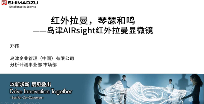 鄭偉先生先以“紅外拉曼,琴瑟和鳴——島津AIRsight紅外拉曼顯微鏡”為題做主題報告,詳細介紹了紅外-拉曼“二位一體”的AIRsight顯微鏡產(chǎn)品創(chuàng)新性和技術(shù)優(yōu)點,該產(chǎn)品基于紅外光譜和拉曼光譜兩種分析技術(shù)的組合,優(yōu)化了顯微分析操作所涉及的從樣品觀察、定位標記、多模式測定到數(shù)據(jù)分析的全工作流效率。該產(chǎn)品可廣泛應用于藥片異物、微塑料顆粒、文物/藝術(shù)品顏料以及鋰離子電池負極材料等極微量樣品和樣品微小區(qū)域的多維度光譜分析測試。