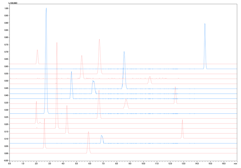 島津LCMS-9050作為一款新型高分辨質譜儀,突破傳統(tǒng)技術,真正實現(xiàn)正負極同時檢測。在提供高分辨率的精確質量數(shù)基礎上,一針進樣獲得正離子和負離子檢測信息,幫助您更有信心定性和定量分析更多化合物,同時提升實驗室工作效率。期待LCMS-9050能夠為代謝組學、生物醫(yī)藥、環(huán)境監(jiān)測、毒物篩查、風險監(jiān)控及未知化合物分析等諸多領域帶來幫助。