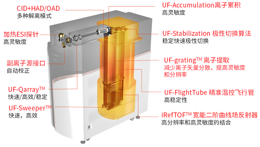 UF-GratingTM 高場離子提取技術:有效聚焦離子,減少離子的折返時間及損失。