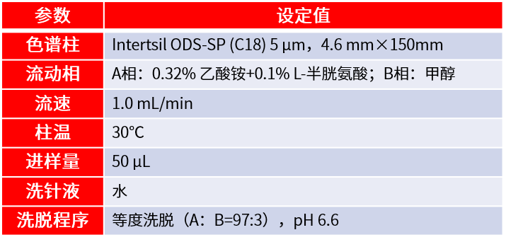 表1 液相色譜LC-20Ai條件