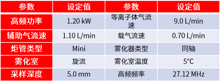 表 2 ICPMS-2030條件