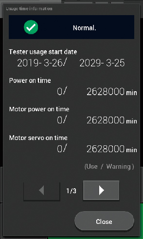 實時監(jiān)測傳感器放大器的校正信息、試驗機運行狀態(tài)、電源電壓、通信狀態(tài)等。出現(xiàn)異常時立即發(fā)出通知。還配置了可確認(rèn)設(shè)備的使用時間和使用次數(shù),并在達(dá)到指定值發(fā)出通知的功能。有助于把握維護(hù)時間,減少因故障造成的停機時間。
