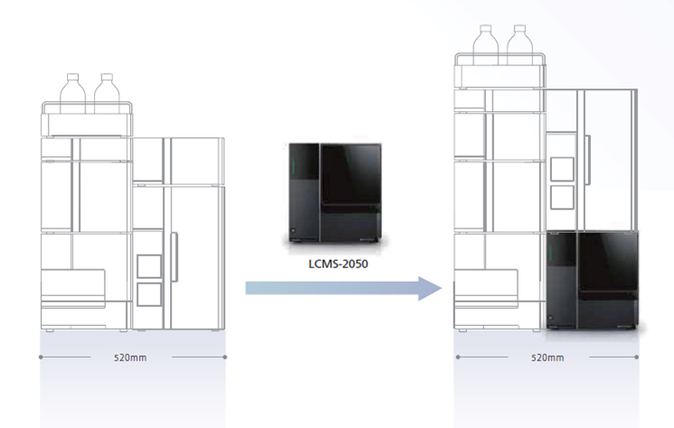 LCMS-2050尺寸與LC單元相似,可與LC單元堆疊放置,因此無需額外空間。