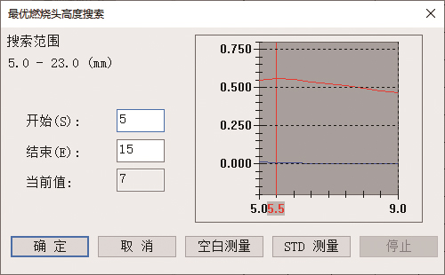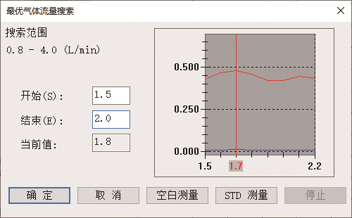 在使用有機(jī)溶劑和調(diào)節(jié)燃燒器高度之后,需要求出火焰氣體流量的最佳值。AA-7800可自動(dòng)進(jìn)行氣體流量的優(yōu)化。在測(cè)定由氣體流量引起的空白樣品與標(biāo)準(zhǔn)樣品吸光度的變化后,畫(huà)面顯示兩者之差的同時(shí),檢測(cè)出靈敏度最高的氣體流量,并將該值自動(dòng)設(shè)定為流量。