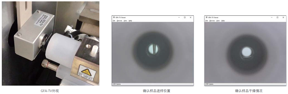 對(duì)石墨管內(nèi)部進(jìn)行實(shí)時(shí)觀測(cè)。可確認(rèn)樣品的進(jìn)樣位置及樣品的干燥情況,因此有利于溫度程序的確認(rèn)和優(yōu)化。通過(guò)鮮明的圖像,可清楚觀測(cè)到爐內(nèi)的狀況。