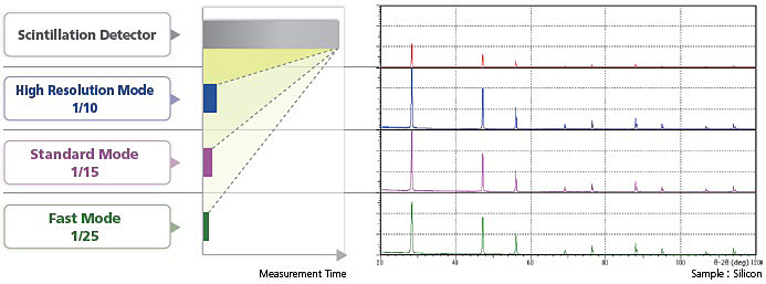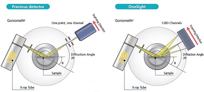 OneSight檢測(cè)器的探測(cè)通道數(shù)達(dá)到1280個(gè),可實(shí)現(xiàn)高靈敏度、高分辨、高速X射線衍射分析。而且利用OneSight檢測(cè)器感光寬度的特長(zhǎng)優(yōu)勢(shì),檢測(cè)器固定在特定的2-theta角位置,無(wú)需掃描即可獲得一定2-theta范圍內(nèi)的衍射譜圖。