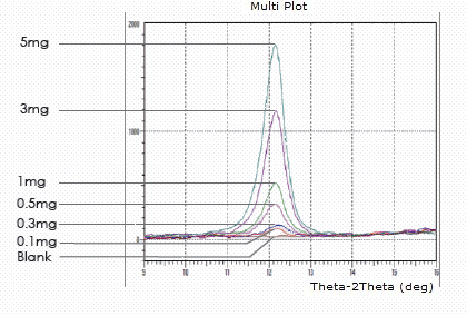 通過(guò)快照模式可以在短時(shí)間內(nèi)獲得特定衍射峰的峰形,快照模式2-theta范圍能夠達(dá)到19度。
