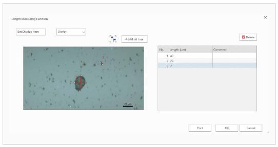 AMsolution軟件提供測(cè)長(zhǎng)功能,可以對(duì)紅外和拉曼顯微圖像中指定的對(duì)象進(jìn)行自動(dòng)長(zhǎng)度測(cè)定,并可實(shí)現(xiàn)一鍵輸出。