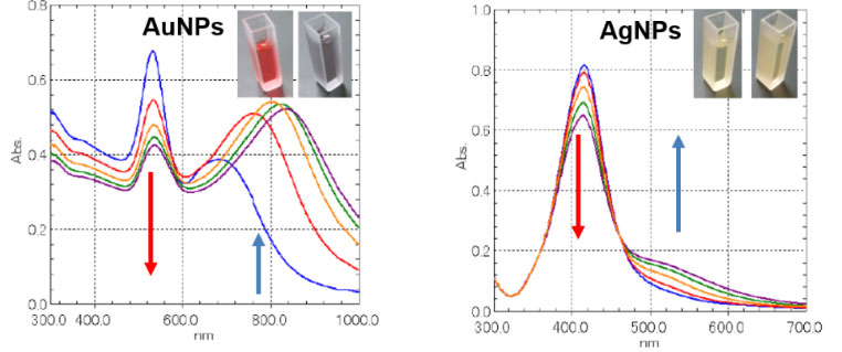 超快掃描速度,輕松追蹤化學(xué)反應(yīng)過程。下圖為當(dāng)納米粒子中加入NaCl鹽溶液后,在不同時(shí)間下紫光光譜監(jiān)測(cè)到的粒子聚集過程。